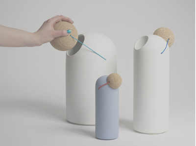 Series of palyful objects by Swiss designer Tomas Kral. Based on the clown's nose and fashioned from ceramics with coloured elastic and cork. Happy red nose pinging.